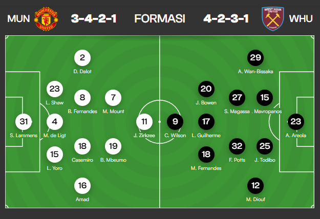 Kemungkinan susunan pemain Manchester United vs West Ham United
